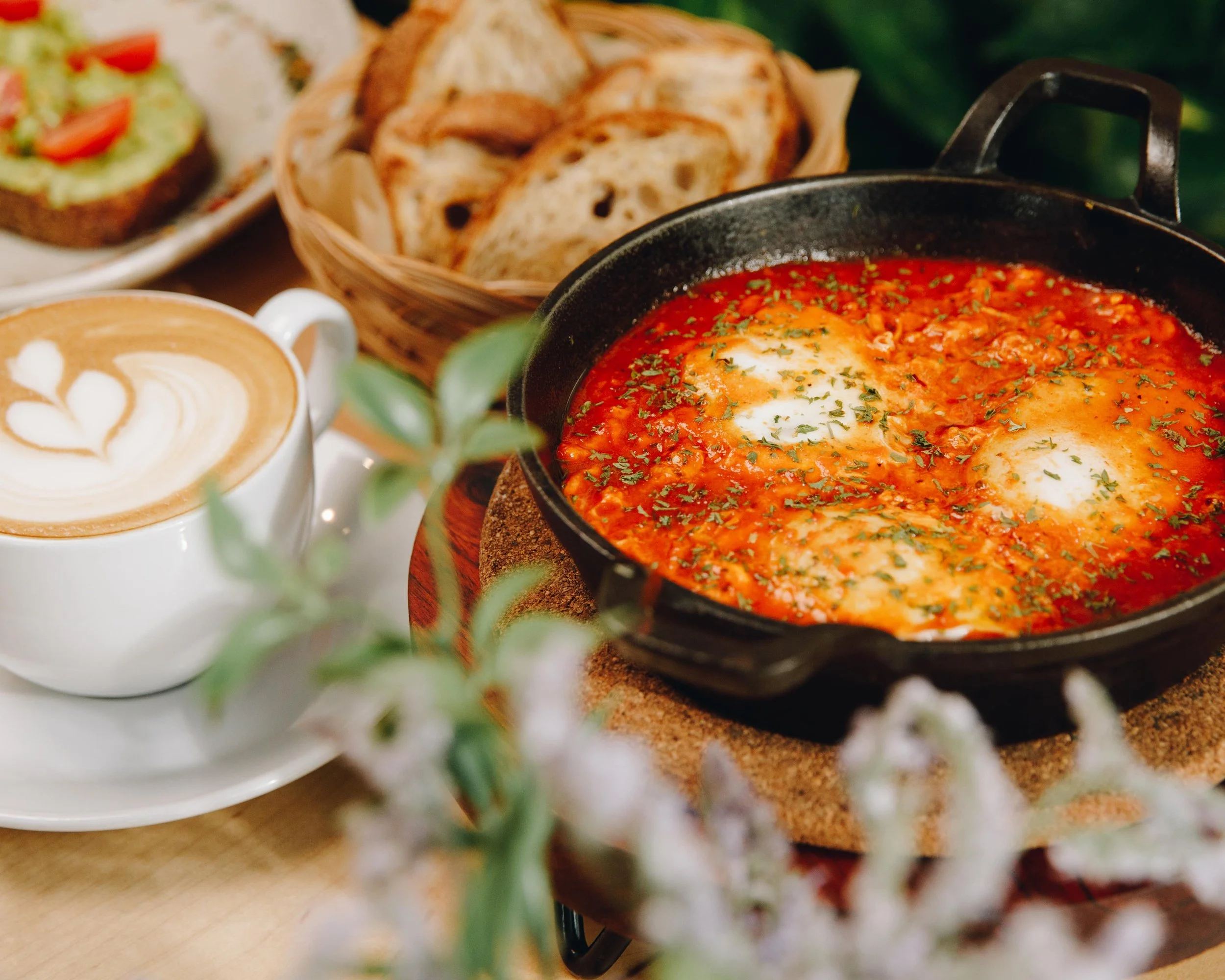 Discover the one and only Shakshuka eggs in the area. This dish is widely popular in North Africa and Middle East, but let me tell you that you don’t have to go so far to try it. Angelina’s Eatery + Cafe recomend this dish as the best option for Brunch in Midtown Miami, Near Wynwood. You will have sunny side up eggs cooked in a spiced and chunky, tomato - red bell pepper stew, topped with parseley and served in a skillet with delicious sourdough bread.